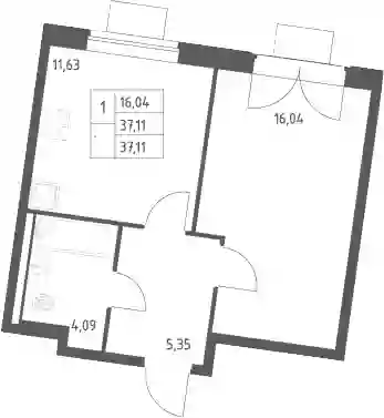 11 746 264 ₽1-к.квартира, 35.37 м², 13 эт.
