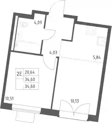 2-к.квартира, 34.6 м², 14 эт. в ЖК Квартал Западный Корпус 10