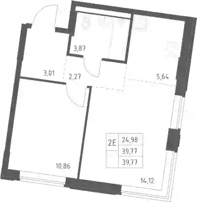 12 636 143 ₽2-к.квартира, 39.77 м², 1 эт.