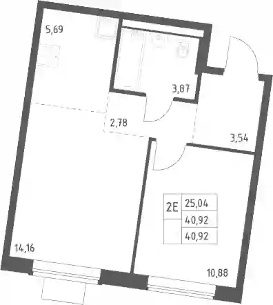 10 016 814 ₽2-к.квартира, 40.92 м², 11 эт.