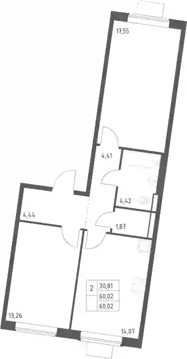 17 549 683 ₽2-к.квартира, 60.02 м², 11 эт.
