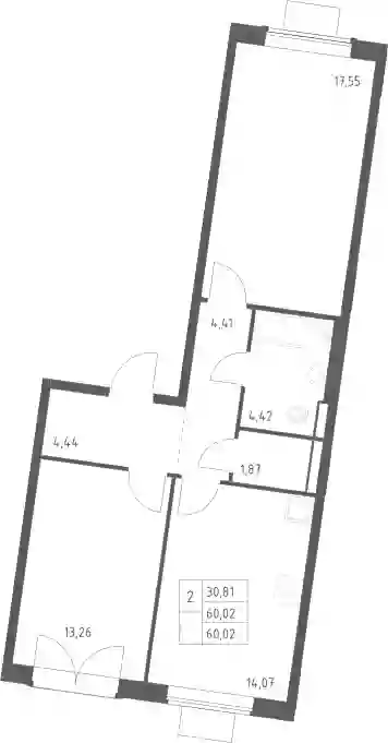 13 341 060 ₽2-к.квартира, 54.43 м², 2 эт.