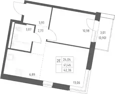 10 605 592 ₽2-к.квартира, 41.46 м², 6 эт.