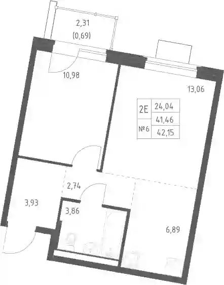 10 695 561 ₽2-к.квартира, 41.46 м², 2 эт.
