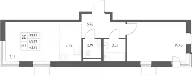 8 649 439 ₽2-к.квартира, 44.41 м², 1 эт.