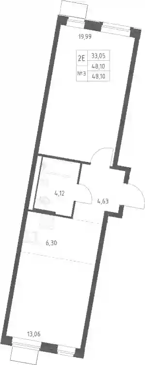2-к.квартира, 48.1 м², 13 эт. в ЖК Квартал Западный Корпус 6