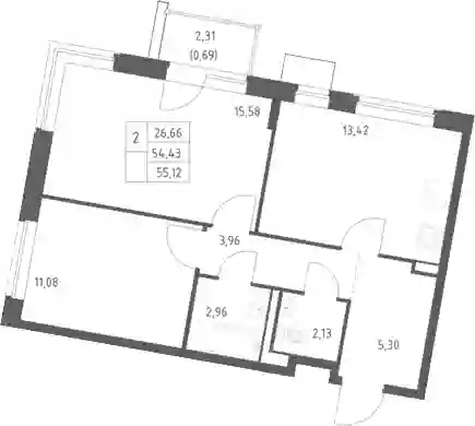 12 066 563 ₽2-к.квартира, 54.42 м², 8 эт.
