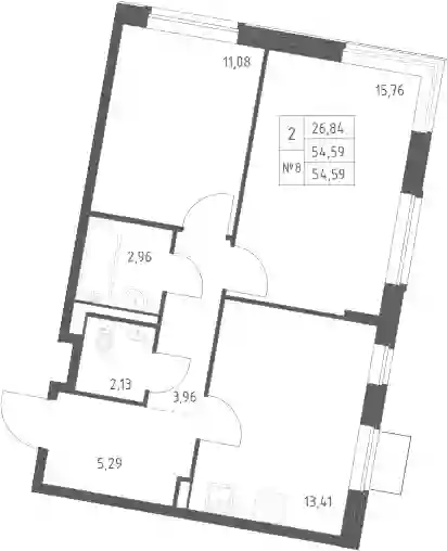 2-к.квартира, 54.59 м², 13 эт. в ЖК Квартал Западный Корпус 6