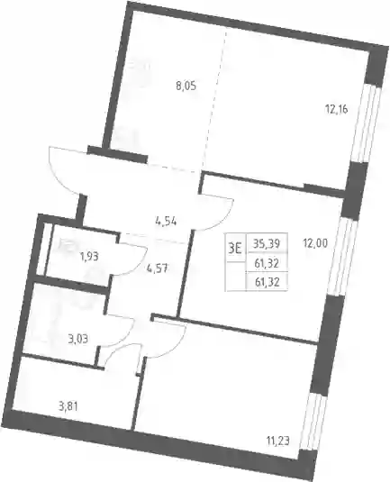 3-к.квартира, 61.32 м², 1 эт. в ЖК Квартал Западный Корпус 6