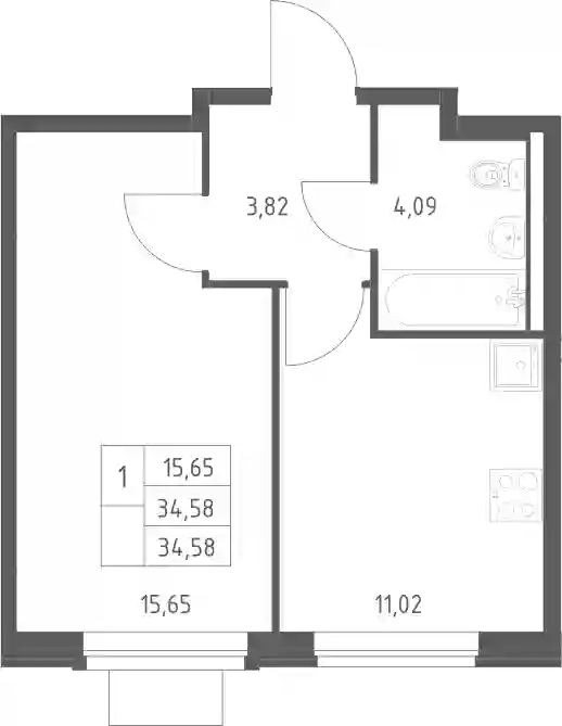 11 475 165 ₽1-к.квартира, 34.58 м², 9 эт.
