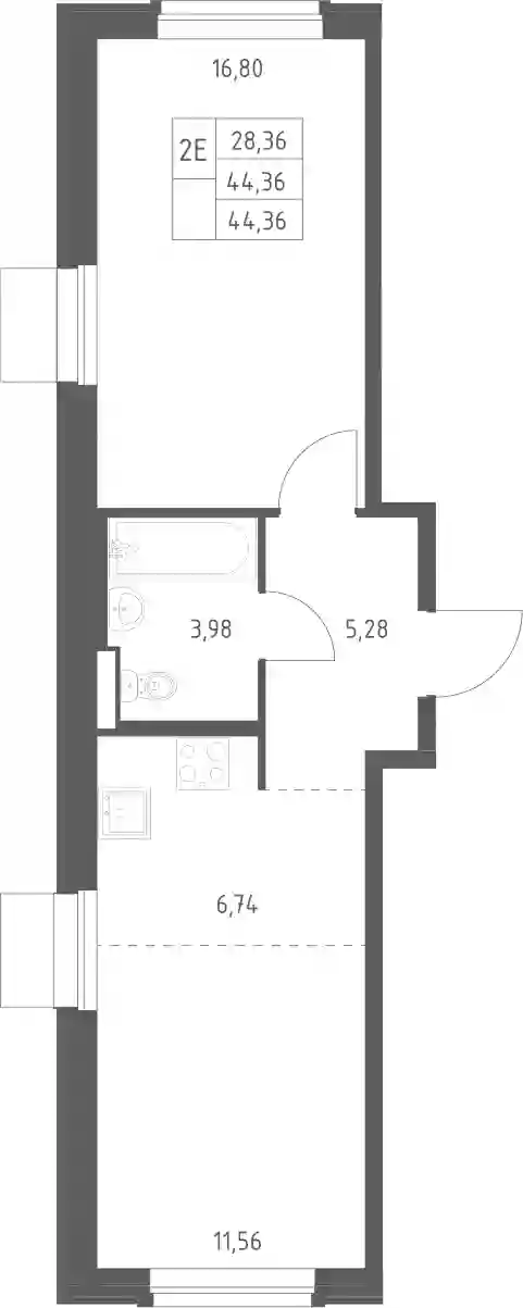 12 972 074 ₽2-к.квартира, 44.36 м², 11 эт.