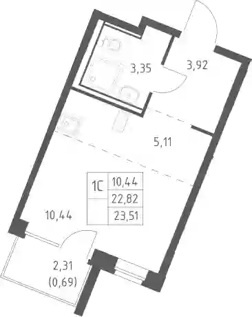8 003 650 ₽Студия, 22.82 м², 2 эт.