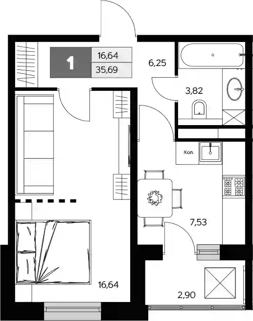 7 166 196 ₽1-к.квартира, 34.24 м², 7 эт.