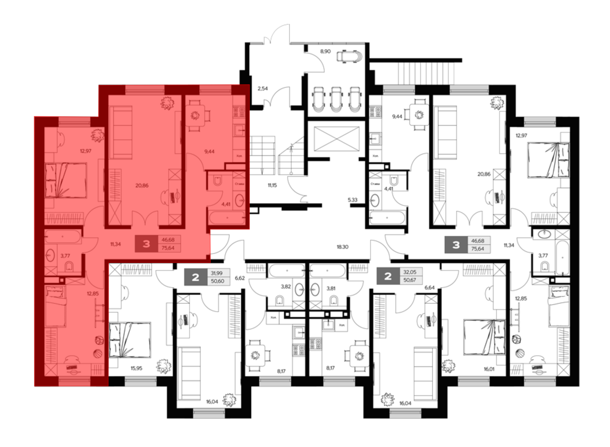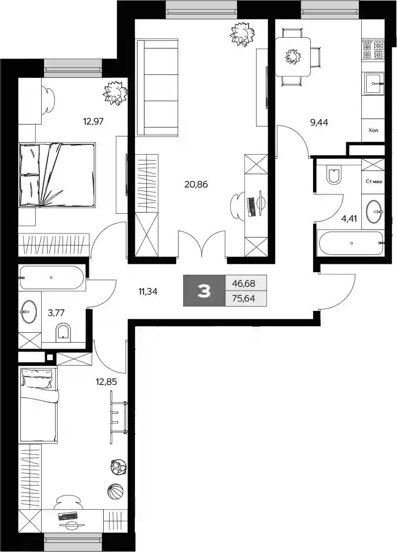 3-к.квартира, 75.64 м², 1 эт. в ЖК Ласточкино Корпус 2