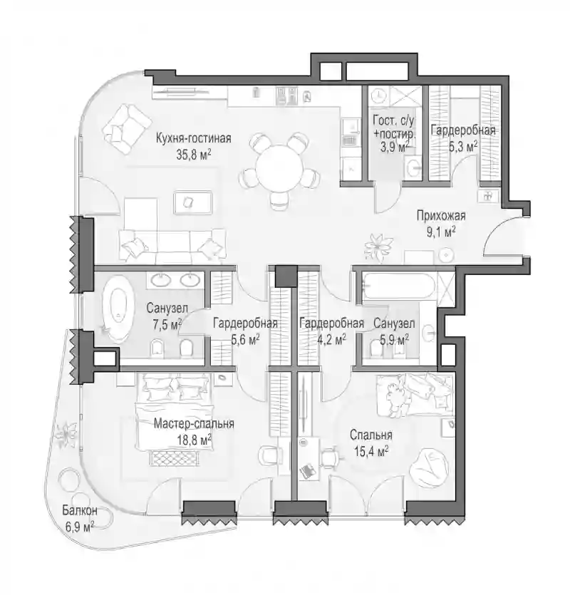 3-к.квартира, 110.93 м², 8 эт. в ЖК Лаврушинский корп. Западный