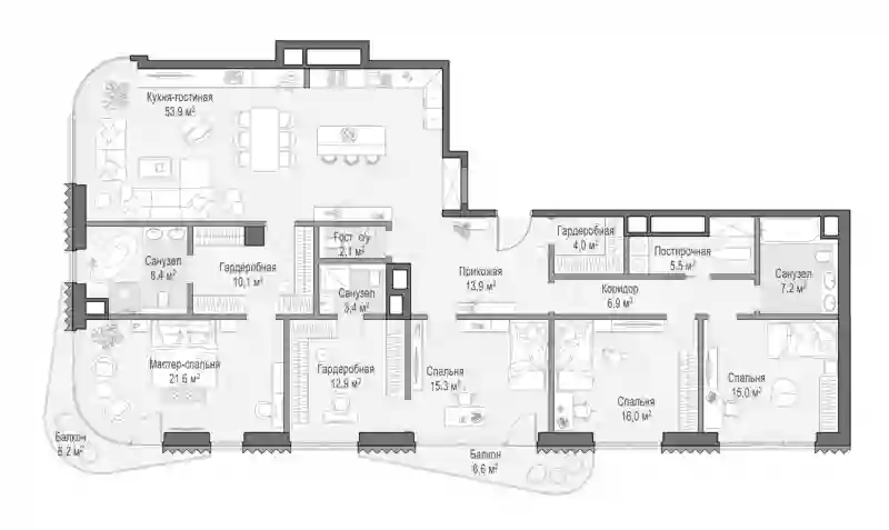 5+к.квартира, 195.16 м², 7 эт. в ЖК Лаврушинский корп. Западный