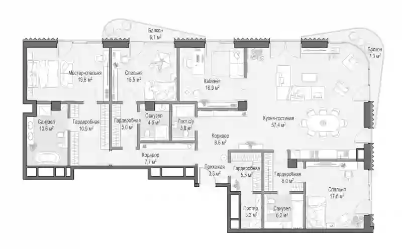 5+к.квартира, 202.98 м², 8 эт. в ЖК Лаврушинский корп. Западный