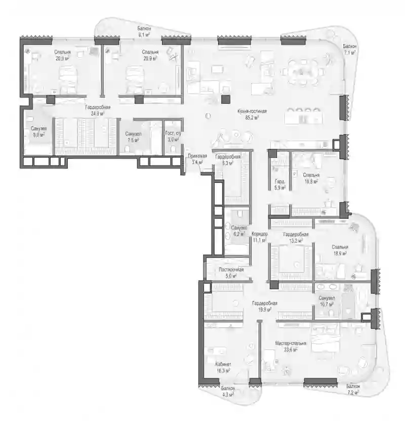 5+к.квартира, 336.59 м², 8 эт. в ЖК Лаврушинский корп. Западный