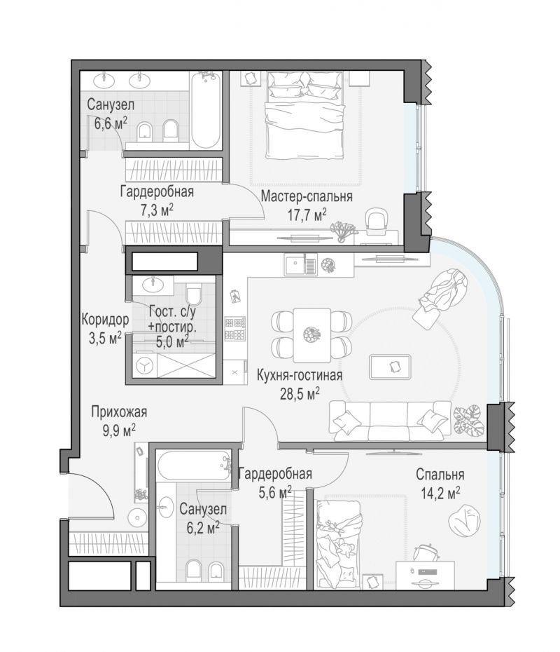 2-к.квартира, 105 м², 9 эт. в ЖК Лаврушинский корп Восточный