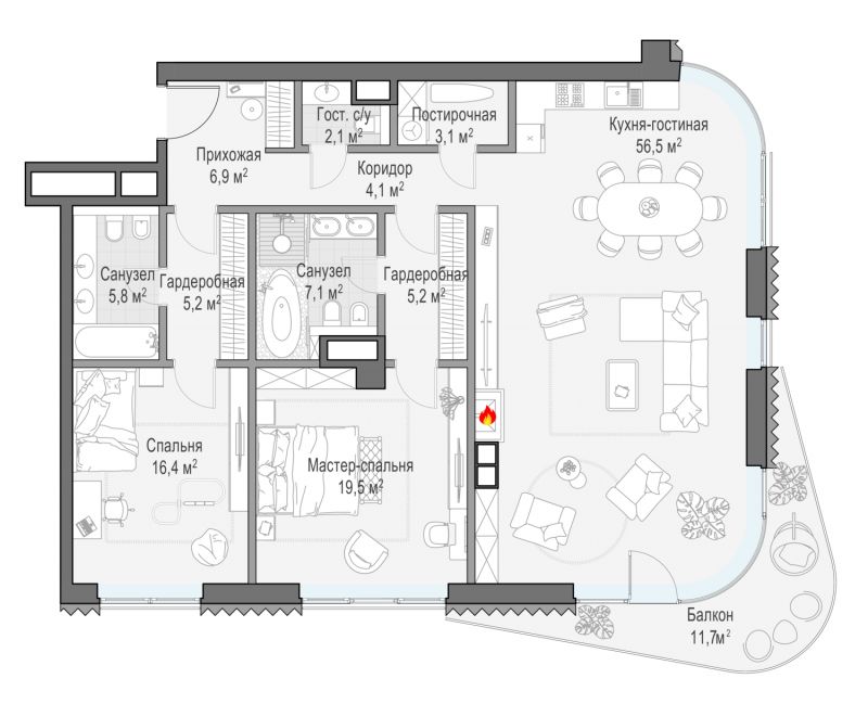 2-к.квартира, 132.49 м², 13 эт. в ЖК Лаврушинский корп Восточный