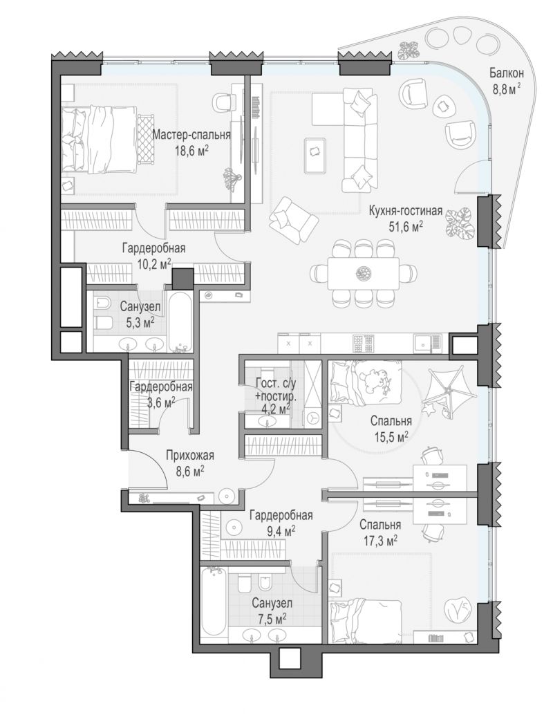 3-к.квартира, 151.36 м², 10 эт. в ЖК Лаврушинский корп Восточный