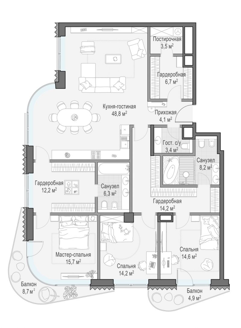 3-к.квартира, 151.92 м², 9 эт. в ЖК Лаврушинский корп Восточный