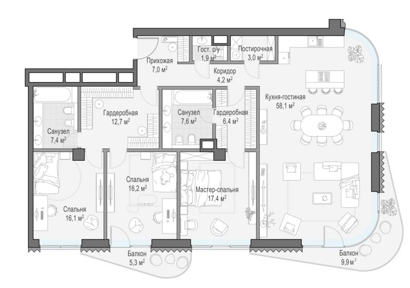 3-к.квартира, 157.44 м², 10 эт. в ЖК Лаврушинский корп Восточный