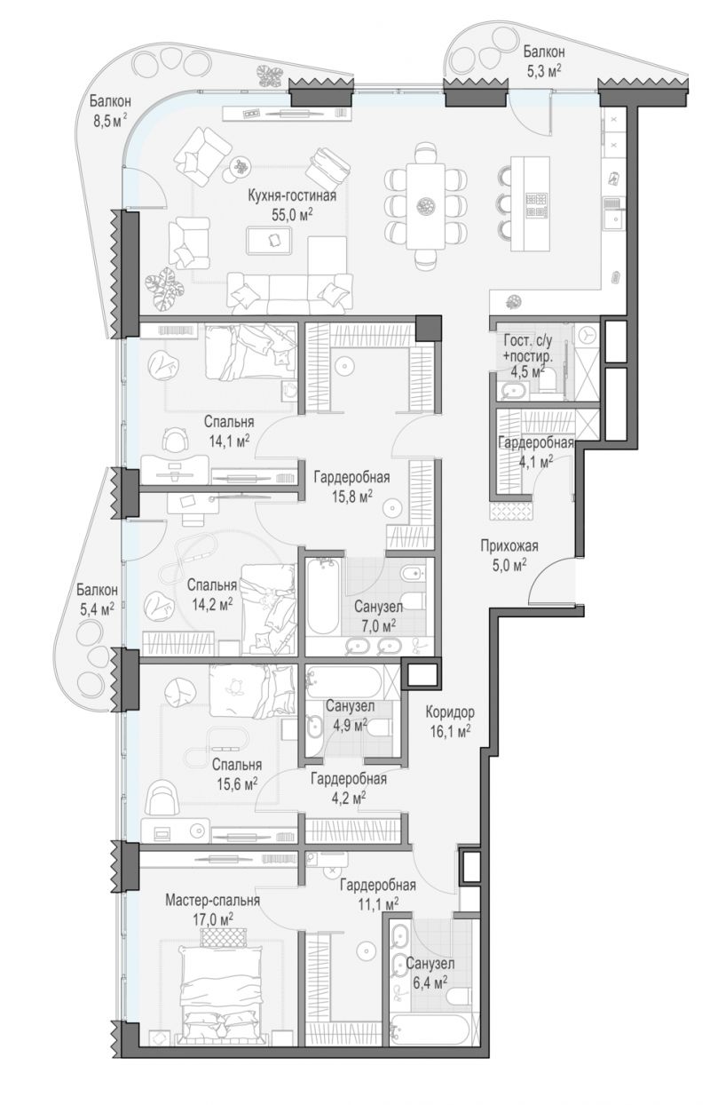 4-к.квартира, 195.24 м², 8 эт. в ЖК Лаврушинский корп Восточный