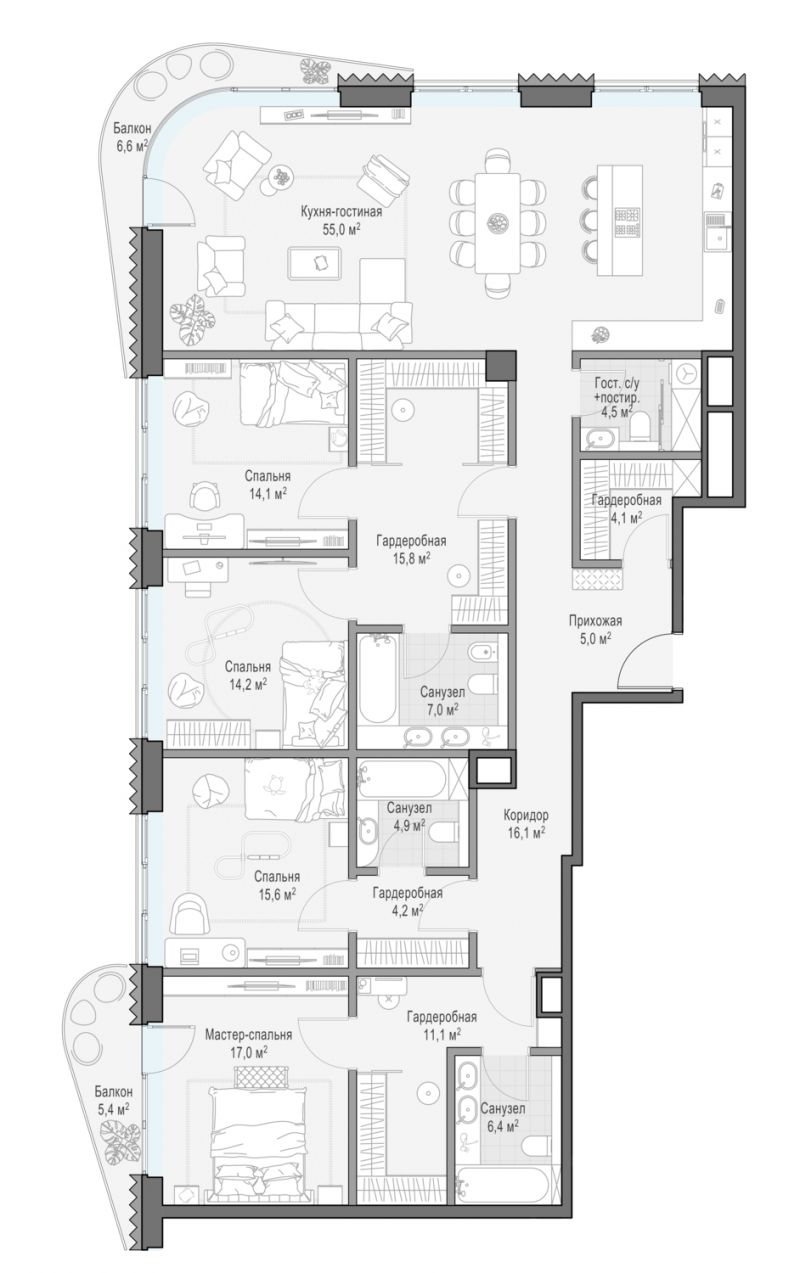 4-к.квартира, 195.4 м², 5 эт. в ЖК Лаврушинский корп Восточный