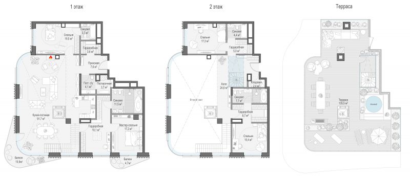 В проекте представлен уникальный выбор роскошных вилл, квартир и пентхаусов с максимальными видовыми характеристиками и каминами. В виллах и пентхаусах — собственные бассейны и террасы. С третьего этажа дома «Лаврушинский» открываются панорамные виды на башни Кремля, Храм Христа Спасителя и исторический центр города. В квартирах предусмотрены: эркеры, панорамное и моллированное остекление.