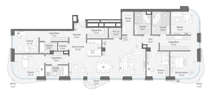 5+к.квартира, 239.68 м², 3 эт. в ЖК Лаврушинский корп Восточный