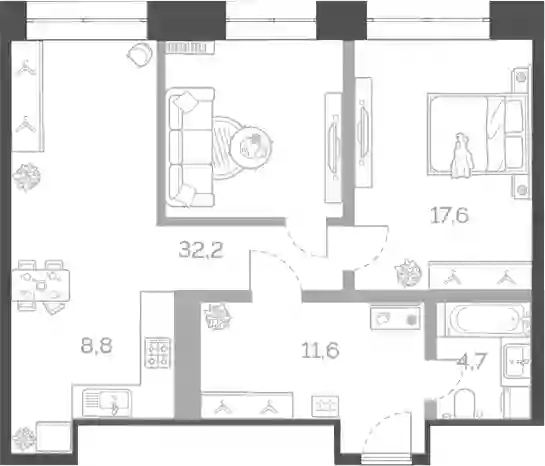 27 396 670 ₽1-к.квартира, 60.3 м², 22 эт.