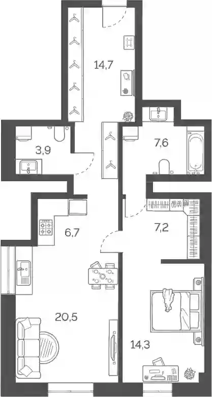 48 805 740 ₽3-к.квартира, 110.6 м², 22 эт.