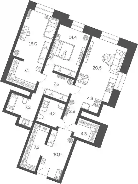 3-к.квартира, 110.2 м², 7 эт. в ЖК Лайм корп. 1