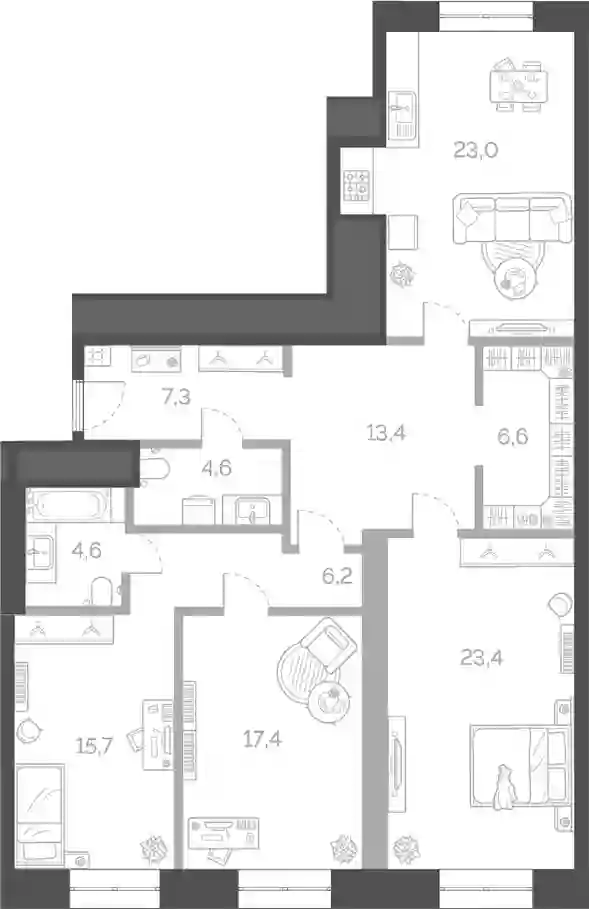 45 763 780 ₽4-к.квартира, 123.1 м², 18 эт.