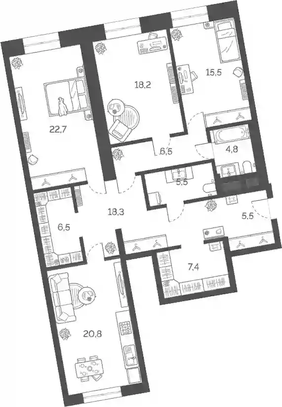 48 963 350 ₽4-к.квартира, 125.4 м², 22 эт.