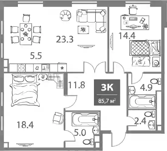 85.7 м2
