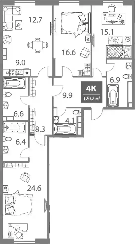 4-к.квартира, 120.2 м², 6 эт. в ЖК Legacy Корпус 1