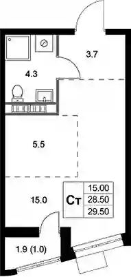 7 435 770 ₽Студия, 28.5 м², 5 эт.