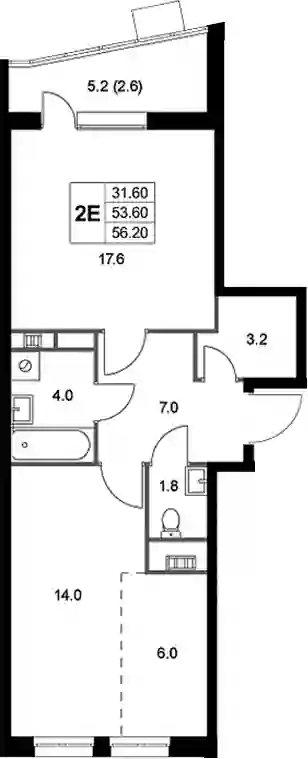 14 106 200 ₽2-к.квартира, 53.6 м², 5 эт.