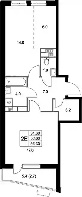 14 143 686 ₽2-к.квартира, 53.6 м², 6 эт.