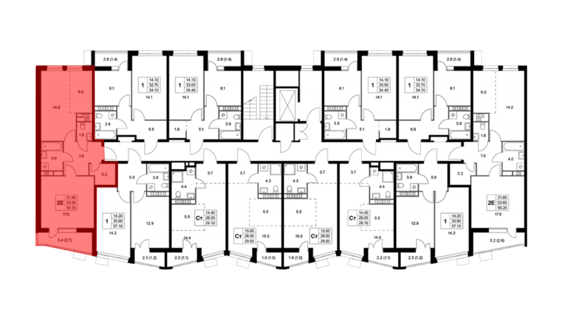 14 106 528 ₽2-к.квартира, 53.6 м², 3 эт.