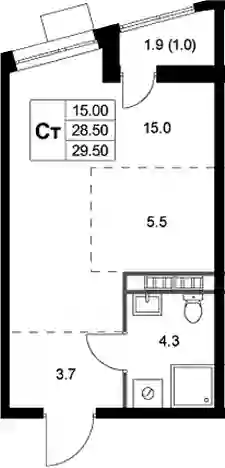 Студия, 28.5 м², 2 эт. в ЖК Легенда Коренево Корпус 4
