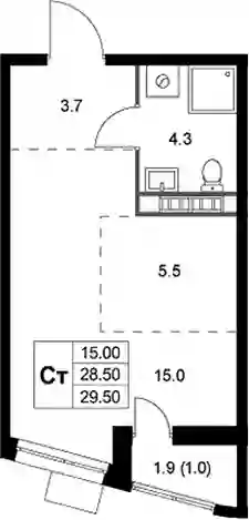 7 428 100 ₽Студия, 28.5 м², 3 эт.