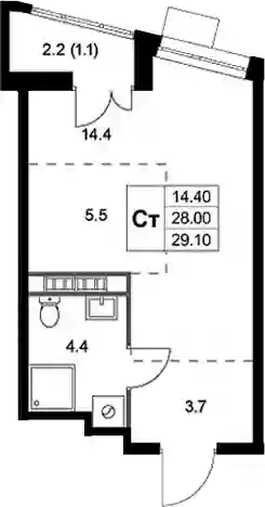 Студия, 28 м², 2 эт. в ЖК Легенда Коренево Корпус 4