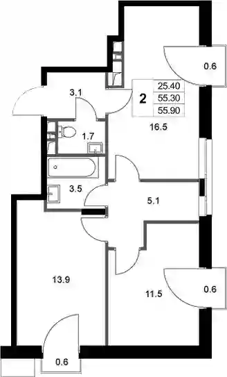 10 675 200 ₽2-к.квартира, 55.6 м², 1 эт.