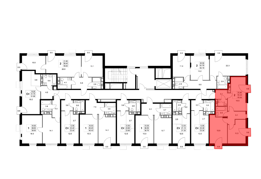12 443 500 ₽2-к.квартира, 60.7 м², 1 эт.