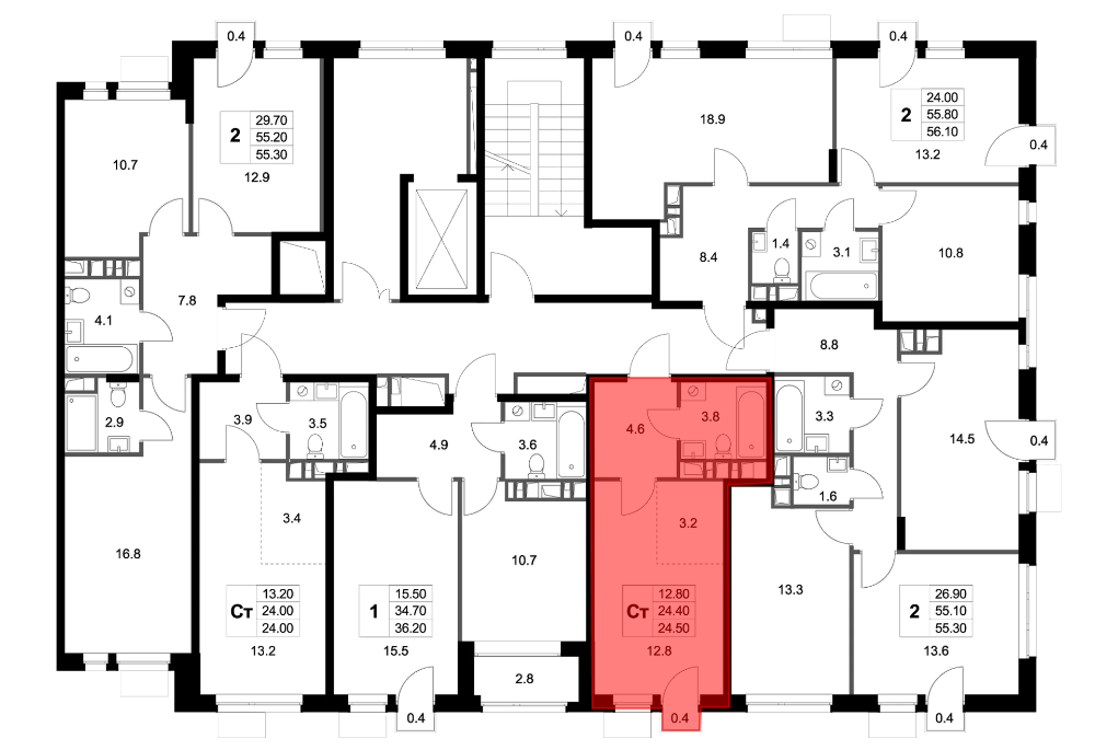 10 675 200 ₽2-к.квартира, 55.6 м², 1 эт.