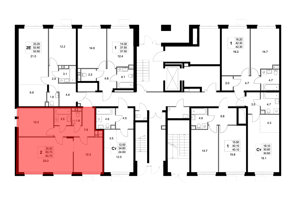 12 347 800 ₽2-к.квартира, 52 м², 5 эт.