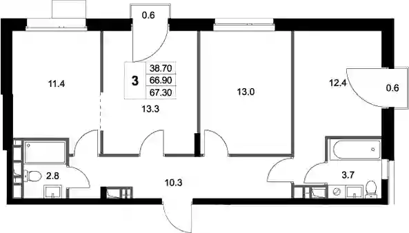 15 661 400 ₽3-к.квартира, 66.9 м², 3 эт.